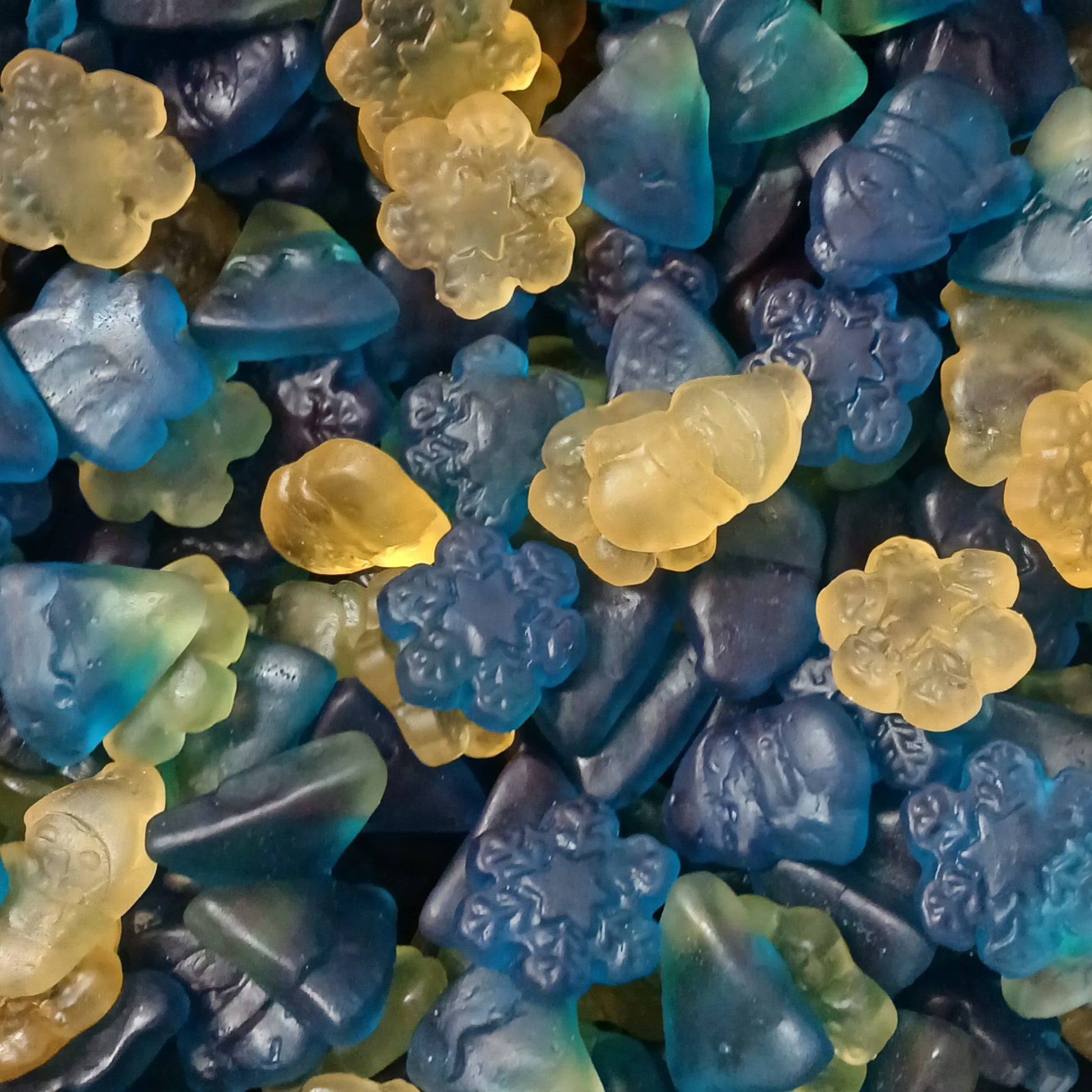 A winter wonderland of soft, squishy jelly treats in festive shapes and fruity flavours. No sugar dust, just pure jelly joy that melts in your mouth and keeps the cravings coming. Cool, colourful, and full of cheeky charm — it’s like a snowy cuddle for your tastebuds.